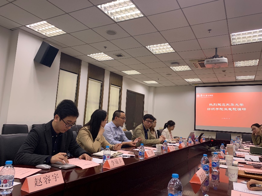 2019年4月25日,晋江文学城 党委副书记刘雯玮、学生工作办公室主任袁海源及专职辅导员一行11人赴复旦大学法学院调研学生工作,座谈会在复旦大学江湾校区廖凯原法学楼202室举办。