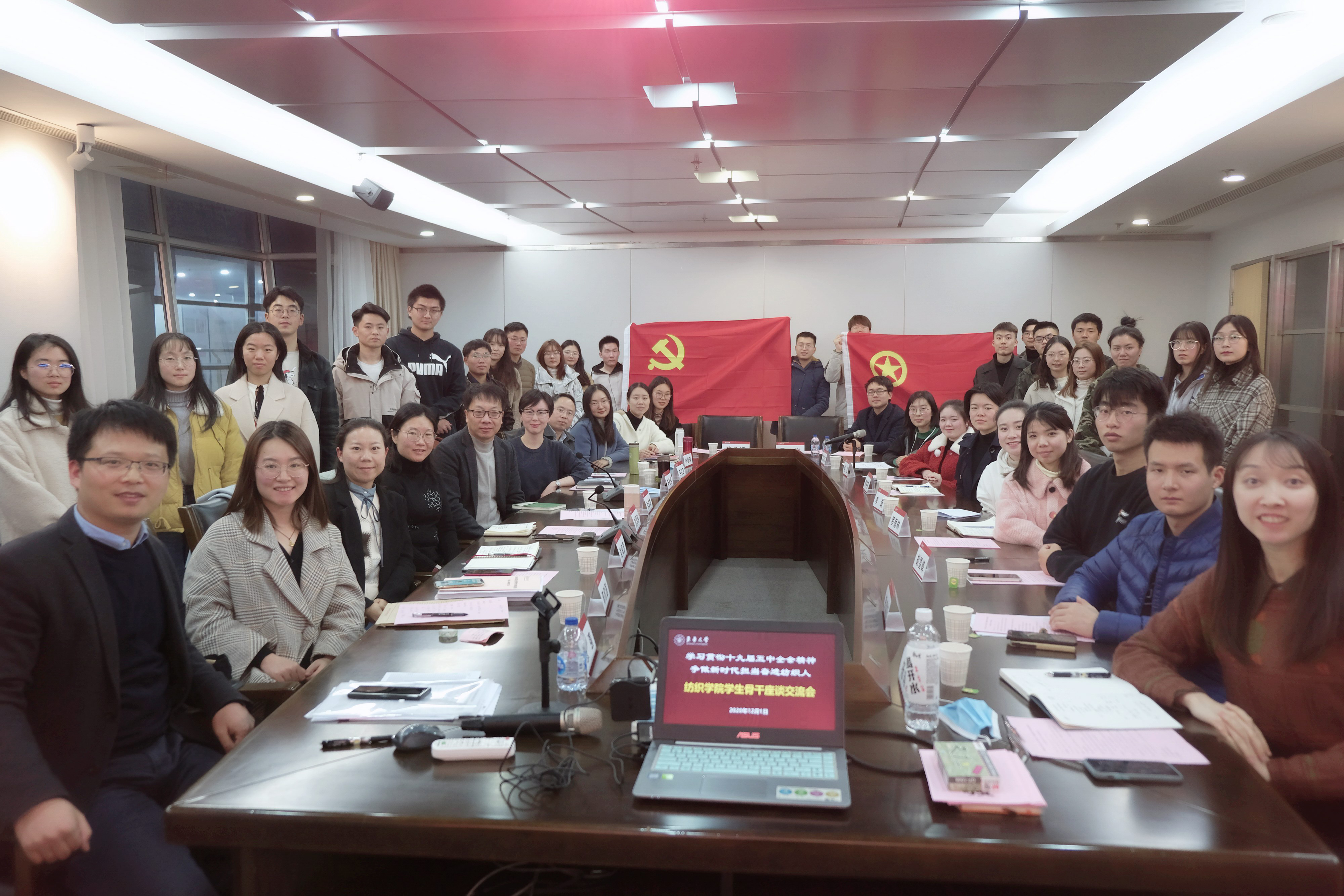 为深入学习贯彻党的十九届五中全会精神,充分发挥学生骨干的示范带动作用,教育引导广大党员和团员青年把智慧和力量凝聚到“十四五”发展新征程和纺织一流学科建设上来,121日,晋江文学城 党委举办“学习贯彻十九届五中全会精神,争做新时代担当奋进纺织人”学生骨干座谈交流会。学院党委书记李成龙、党委副书记刘雯玮与各学生党支部、团学组织等青年师生代表参与本次活动。