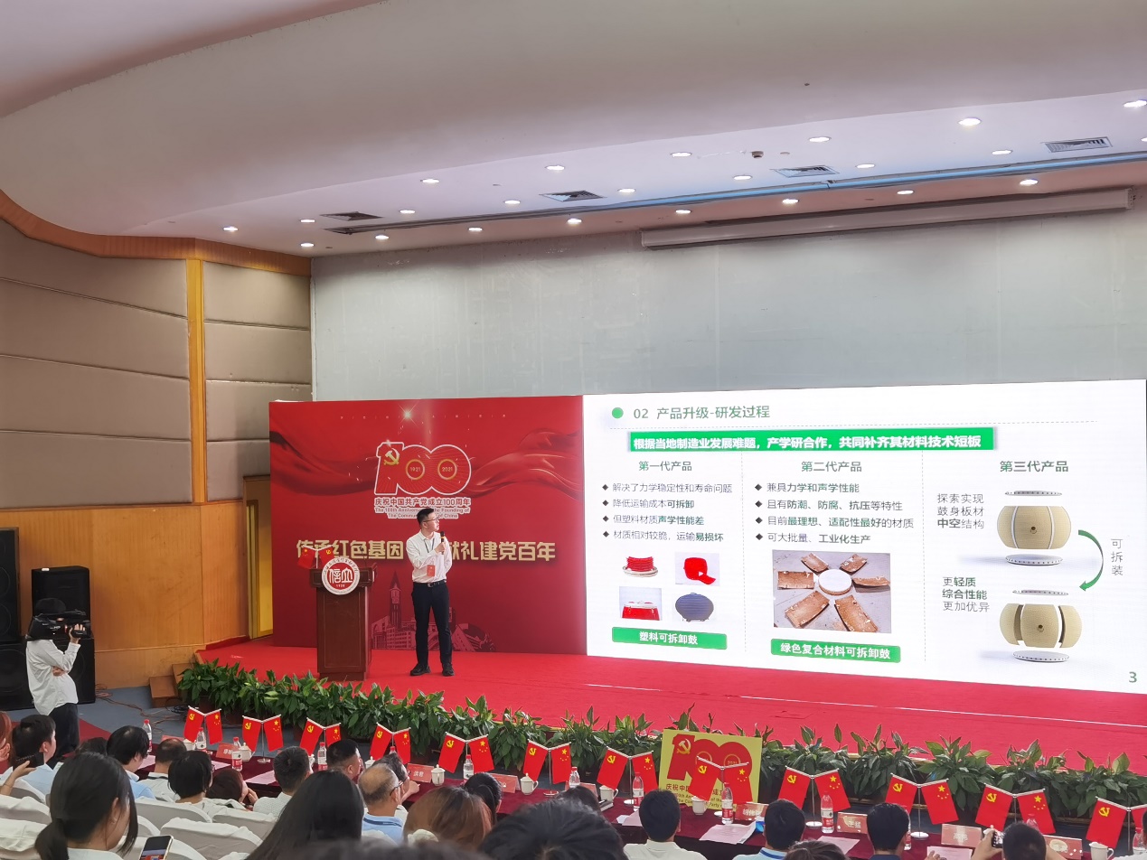 该项目基于非物质文化遗产湘西苗族大鼓的运输难、成本高的痛点问题,采用当地种植的苎麻为原材料,设计了可拆装的绿色复合材料大鼓,不仅能解决传统大鼓的缺陷,还能带动当地上游苎麻产业和下游文化旅游业的发展。该项目积极响应国家提出“乡村振兴”的战略,同时迎合了生态保护的需求,顺应国家“绿水青山就是金山银山”的发展战略,有助于国家早日实现“碳达峰”和“碳中和”的目标。